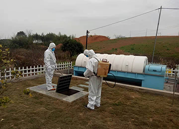 2021年12月22日科然環(huán)境運(yùn)維組員工為號(hào)召國家防控疫情政策,對(duì)各個(gè)終端和管網(wǎng)的污水池進(jìn)行全面的清掏、消殺工作。運(yùn)維組消殺人員配有專業(yè)的防護(hù)服、手套、口罩以及專業(yè)的消殺工具。